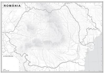 Harta, fizica, administrativa si a substantelor minerale utile, Romania si Republica Moldova. Harta de contur, dimensiuni 600x470mm, fara sipci