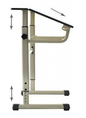 Blatul este format din 2 parti unite intre ele: o parte pozitionata orizontal (prevazuta cu nisa pentru pixuri si suport pentru pahar) si cealalta parte cu posibilitatea ajustarii unghiului de inclinare pana la 15º.