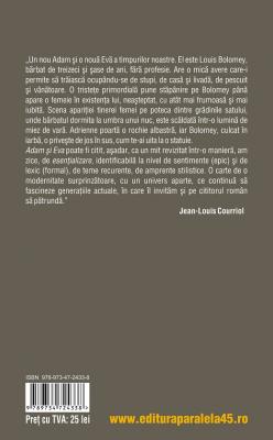 Adam si Eva poate fi citit, asadar, ca un mit revizitat intr-o maniera, am zice, de esentializare, identificabila la nivel de sentimente (epic) si de lexic (formal), de teme recurente, de amprente stilistice. O carte de o modernitate surprinzatoare, cu un univers aparte, ce continua sa fascineze generatiile actuale, in care il invitam si pe cititorul roman sa patrunda.”