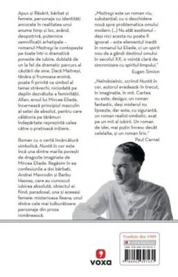 „Maitreyi este un roman viu, substantial, cu o deschidere noua spre problematica omului modern. (...) Nu atat exotismul – desi nici acesta nu poate fi ignorat – este elementul inedit in romanul lui Eliade, ci un spirit nou de a gandi destinul omului in secolul XX, o vointa clara de sincronizare cu spiritul timpului.“ Eugen Simion