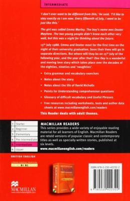 The Macmillan Readers series are carefully graded from Starter to Upper Intermediate (A1-B2) to help students choose the right reading material for their ability. Our list of titles includes great stories from both contemporary and classic authors. 15th July 1988. Emma and Dexter meet for the first time on the night of their university graduation. Soon their lives will go in separate directions. But where will they be on 15 July of the following year, and the year after that? One Day is a wonderful and moving love story which takes place over the decades of the eighties and nineties.