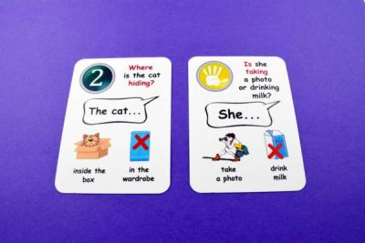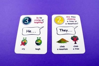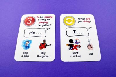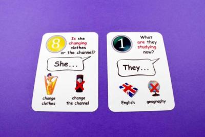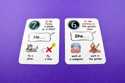 With this set your students will develop the skill of answering Present Continuous questions automatically. Students  have to answer questions using both affirmative and negative sentences. You can mix cards from different sets and practise a few tenses at the same time. The set consists of 50 cards with 50 questions, 100 pictures and the answers on the reverse side.