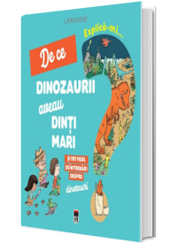 Aveti un copil prin preajma? E la varsta cand pune tot felul de intrebari? Iata o carte potrivita pentru aceasta etapa. Explica-mi de ce dinozaurii aveau dinti mari, raspunde la 11 intrebarii puse de cei mici, intr-un stil prietenos si amuzant. Ilustratiile de pe pagina din stanga exemplifica totul, iar clapeta ofera raspunsuri pe intelesul lor. Pagina din dreapta aduce informatii care completeaza tabloul, pentru ca cei mici sa afle cat mai multe despre fiecare subiect. La finalul cartii, un tablou reuneste tot ce au aflat copiii despre dinozauri.
