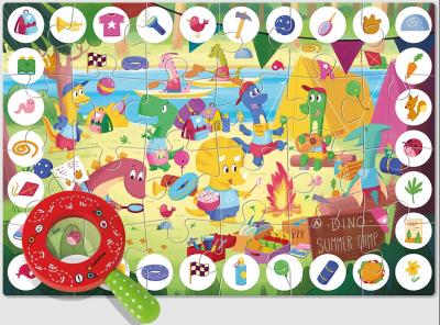 Dupa ce puzzle-ul este complet, micii detectivi pot continua aventura folosind lupa speciala cu maner din lemn pentru a gasi obiectele ascunse in imagine. Aceasta activitate adauga un plus de entuziasm si dezvolta spiritul de observatie.