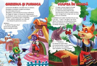 Fiecare pagina contine cate o fabula, insotita de ilustratii sugestive, mari si viu colorate, prin care copiii vor afla defectele umane in cel mai comic si ironic mod, totodata acumuland invataturi pretioase.