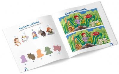 La sfarsitul cartii, copiii vor descoperi patru foi de activitati interactive, special concepute pentru a aprofunda intelegerea povestilor si pentru a stimula creativitatea. Aceste activitati includ: potrivirea umbrelor, unirea punctelor, gasirea diferentelor, excluderea intrusului, colorarea imaginilor si parcurgerea labirintului. Aceste activitati ofera o modalitate distractiva si educativa de a incheia experienta lecturii.
