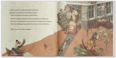 Puse in pagina in straie noi, fabulele moderne prezinta subiecte moralizatoare deja consacrate in istoria omenirii. Aceleasi defecte sunt trase la raspundere, in timp ce personajele necuvantatoare – flori, pasari sau animale – devin portavocea unor replici traduse in limbaj contemporan, formulate parca pe-ntelesul ascultatorilor de-acum, in aceeasi speranta de indreptare. De-aceasta data, morala se vrea a fi desprinsa si insusita din cartea „Gainusa cea roscata”, poveste adaptata de Pilar Martinez, pornind de la un basm popular, si ilustrata de Marco Somà.