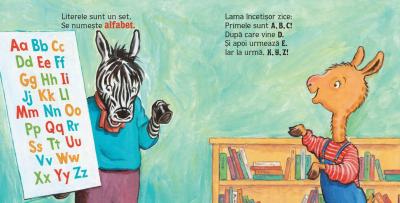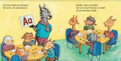 La scoala, Lama si prietenii isi scriu numele, invata literele, merg la biblioteca si imprumuta carti.