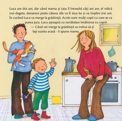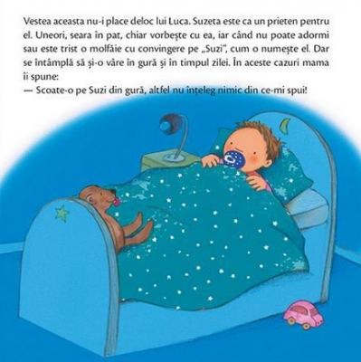 De acum, Luca nu mai are nevoie de suzeta deoarece este un copil mare care merge deja la gradinita! Mai mult, inspirat de o poveste despre zana suzetelor spusa de tata seara, Luca are o idee grozava despre cum ar putea sa renunte foarte usor la suzeta…