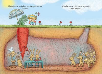 ”Ce frumoasa este!” s-a bucurat ursuletul cand a descoperit o planta ciudata in gradina lui.