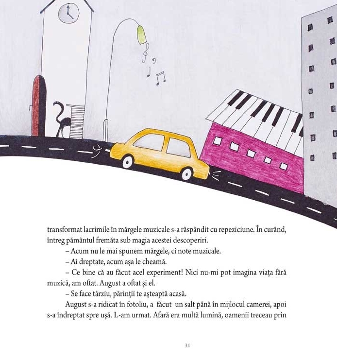 Lidia, o fata de 10 ani, se muta intr-un oras necunoscut, pe care il descopera treptat in fiecare zi. Absolut din intamplare se intalneste, pe treptele unei brutarii, cu August, un motan negru, cu blana lucioasa. Cel mai neasteptat lucru nu este ca fusese campion la catarari pe cortina operei sau ca adora sucul de sfecla, ci ca e un motan vorbitor care poate opri timpul. In ceasornicaria unde locuieste August, ticsita de ceasuri care ticaie dirijate de coada motanului, Lidia descopera, prin aventurile la care participa, raspunsul la intrebari care ne preocupa pe toti. Timpul se poate opri? Poti pierde timpul? Exista lucruri fara varsta, care nu imbatranesc? De ce sunt pretioase lucrurile vechi? Ce sunt notele muzicale? Cum a aparut muzica? Cartile bune tocmai asta fac: ne ajuta sa ajungem la intrebarile importante si sa stim ce sa facem cu ele.