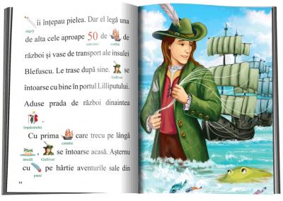Cartea face parte din colectia „Invat sa citesc! Nivelul 1” si prezinta povestea „Gulliver in Lilliput” destinata micilor cititori incepatori, care abia incep sa citeasca fluent. Cartea, repovestire dupa Jonathan Swift, include ilustratii deasupra cuvintelor, pentru a usura asocierea cuvant-sens. Lucrarea il va ajuta pe copil sa isi exerseze citirea, iar ilustratiile color si fontul de dimensiuni mari vor face ca textul sa fie mai rasfirat si, implicit, ca lectura sa fie mai atragatoare si mai usor de parcurs. Cartea este destinata copiilor de 7-8 ani.