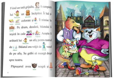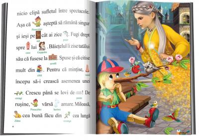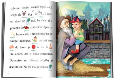 Cartea, repovestire dupa Carlo Collodi, include ilustratii deasupra cuvintelor, pentru a usura asocierea cuvant-sens. Cartea il va ajuta pe copil sa isi exerseze citirea, iar ilustratiile color si fontul de dimensiuni mari vor face ca textul sa fie mai rasfirat si, implicit, ca lectura sa fie mai atragatoare si mai usor de parcurs. Cartea este destinata copiilor de 7-8 ani si face parte din colectia „Invat sa citesc! Nivelul 1”.
