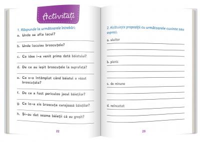 La sfârșitul cărții găsești exerciții de rezolvat după lectură, precum și un mic dicționar.