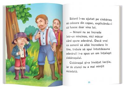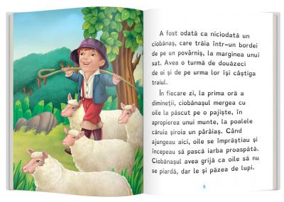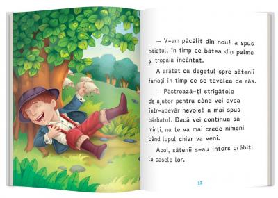 Descopera ce s-a intamplat cu ciobanasul caruia i se parea amuzant sa-si bata joc de sateni. La sfarsitul cartii gasesti exercitii de rezolvat dupa lectura, precum si un mic dictionar.