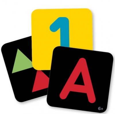 -forme geometrice, numerele 1-3 si literele A, B, C, cu doua culori noi (galben si verde) pentru 6+ luni.