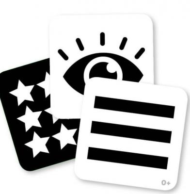 Cutia contine 24 de carduri contrastante pentru stimulare vizuala: