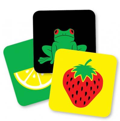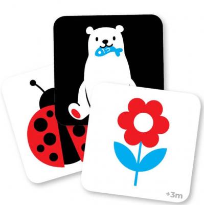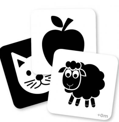 Cutia contine 24 de carduri contrastante pentru stimulare vizuala: