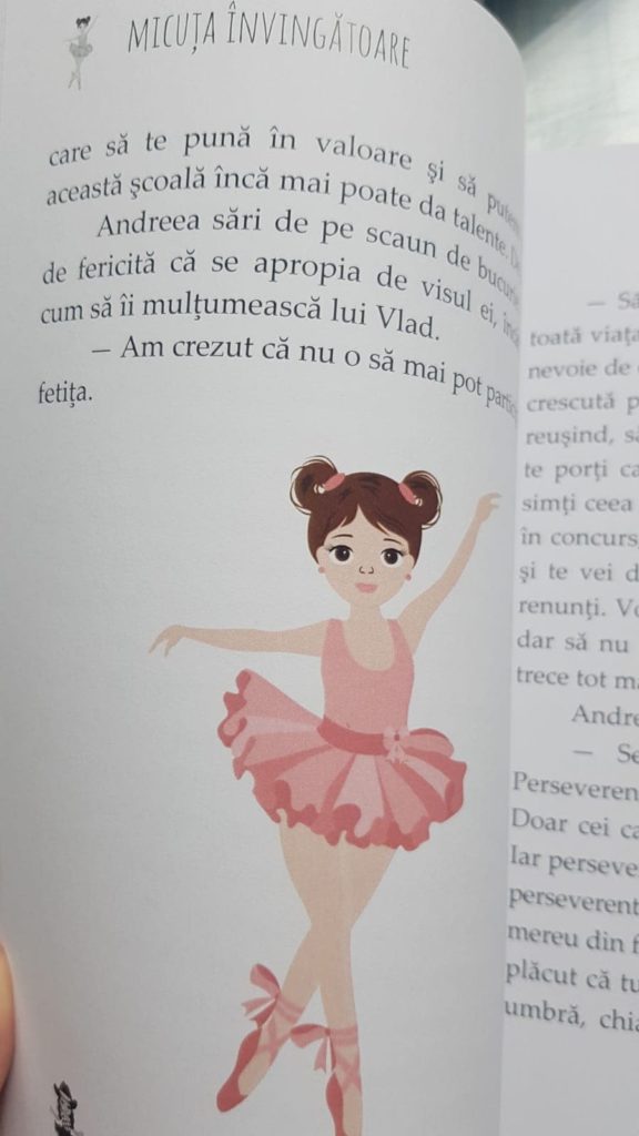 „Micuta invingatoare” este o poveste despre dorinta, atitudine, implinirea visurilor, dar mai ales despre perseverenta. Copiii vor fi fascinati de ambitia si daruirea micutei Andreea, care reuseste sa demonstreze ca talentul nu este totul, dar, daca este dublat de munca sustinuta, speranta, sustinere familiala, perseverenta, poti ajunge acolo unde iti doresti.