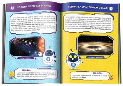 Daca esti pasionat de astronomie, vei afla cand s-a format Sistemul Solar, ce sunt petele de pe suprafata Lunii, ce corp ceresc este Luceafarul si multe altele. Sectiunile Cel mai..., Asa a devenit celebru..., Legenda spune ca..., Afla ca... si Stiai ca... contin cateva dintre cele mai captivante curiozitati cu care iti vei da pe spate colegii, prietenii, ba poate chiar si profesorii!
