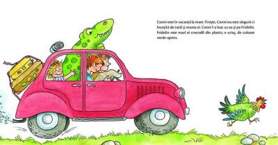 Conni este în vacanță la mare. Desigur, Conni nu merge singură la plajă, ci însoțită de mama și tata. Și de crocodilul ei mare și verde, din plastic, Fridolin. Dar marea este periculoasă pentru crocodili...