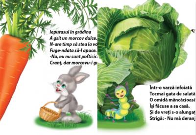 Carticica cu pagini de carton, perfecta pentru copiii mici. Coperta buretata e placuta la atingere, iar dimensiunile sunt potrivite pentru a putea fi tinuta independent in manute.