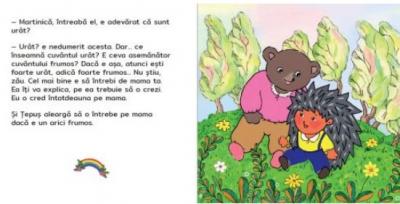 Si atunci aricelul alearga la mama. Ea ii explica ce inseamna sa fii urat, dar mai ales ce inseamna sa fii frumos.