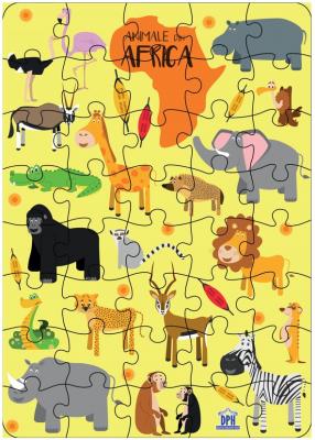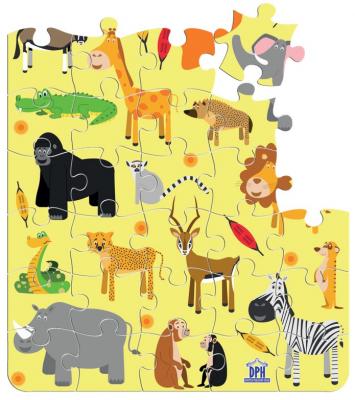 Acest puzzle contine 40 de piese si ii face pe copii sa observe si sa invete animale din Africa. Girafa, elefantul, leul, zebra, rinocerul sau hipopotamul sunt doar cateva dintre animalele care il vor surprinde pe cel mic si il vor face sa le descopere. Atunci cand o piesa se potriveste perfect cu o alta piesa, o noua lume prinde viata in mainile copiilor, iar acest lucru ii face pe cei mici sa fie din ce in ce mai entuziasmati cu fiecare puzzle realizat.