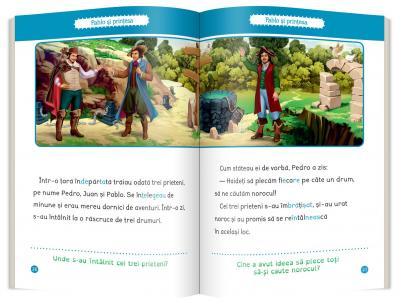 La sfarsitul fiecarei povesti, copilul va raspunde la cate sase intrebari de verificare. De asemenea, in subsolul paginilor se regasesc intrebari menite sa testeze competentele lexicale (in cazul primei povesti) si intelegerea textului (in cazul celei de-a doua povesti).