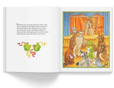 Textul este scurt si descrie intr-o maniera hazlie intreaga actiune. Cei mici descopera rolul fiecarui copil din poveste si deslusesc trairile lui Franklin.