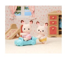 Setul de Figurine Sylvanian Families - Gemenii Iepurasi Chocolate este format din cei doi frati gemeni: Breeze Chocolate si Kabe Chocolate.