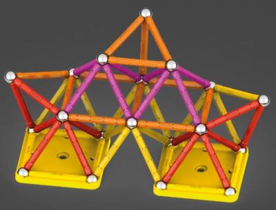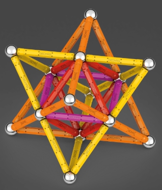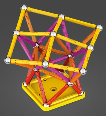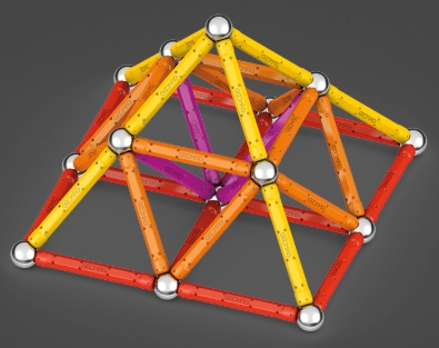 Geomag este un sistem inventiv de constructii simple, realizat din tije magnetice, sfere de otel si alte componente colorate. Datorita sistemului structural simplu, poate fi creat un numar infinit de forme.