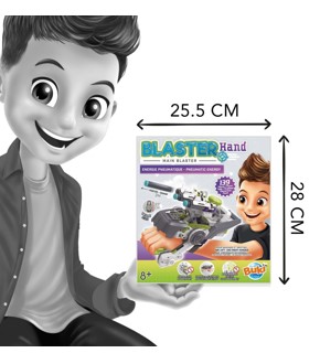 Asamblati piesele si construiti un lansator de 27 cm care functioneaza cu energie pneumatica! Odata construit, bagati mana inauntru si pompati pentru a arunca sagetile pana la 3 metri! Jucaria se poate folosi atat pe mana dreapta,cat si pe mana stanga.
