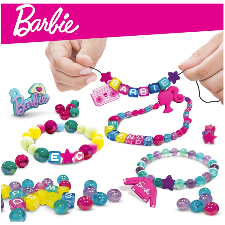 • pe langa margelele colorate, veti gasi in interior niste brelocuri foarte simpatice cu tematica Barbie pentru a personaliza bratarile si colierele pe care doriti sa le faceti cadou persoanelor dragi