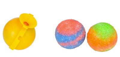 • realizeaza mingiutele saltarete in 3 pasi: amesteca pulberea de cristal colorata cu apa si toarna compozitia in forma din set si mingiuta saltareata este gata!!