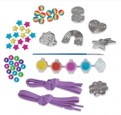 • decoreaza chiar tu talismanele cu vopseaua inclusa si adaga-le la sireturi impreuna cu margelele