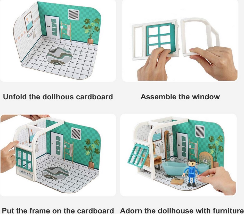 • piesele de mobilier sunt realizate miniatural din lemn si plastic si sunt finisate in detaliu
