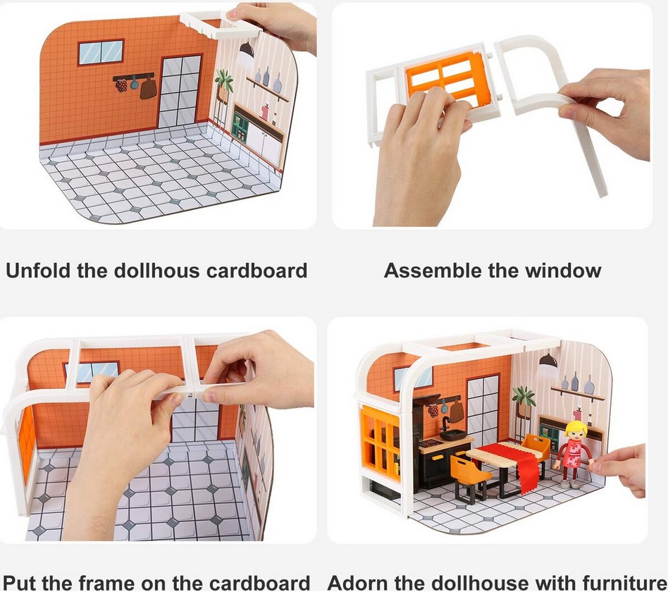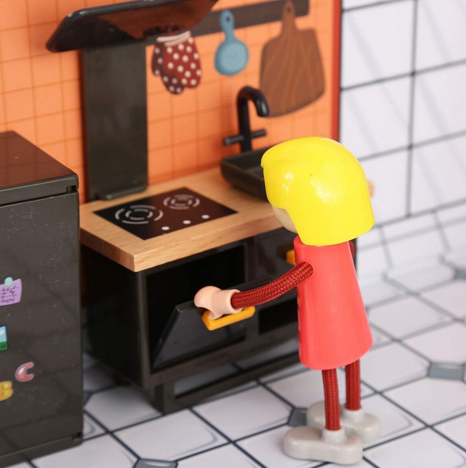 • piesele de mobilier sunt realizate miniatural din lemn si plastic si sunt finisate in detaliu
