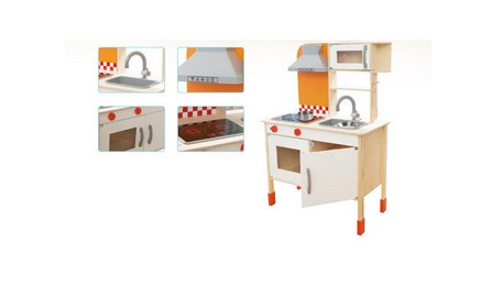 • pentru distractie suplimentara bucataria se poate combina cu seturile de accesorii marca Topbright sau Bigjigs