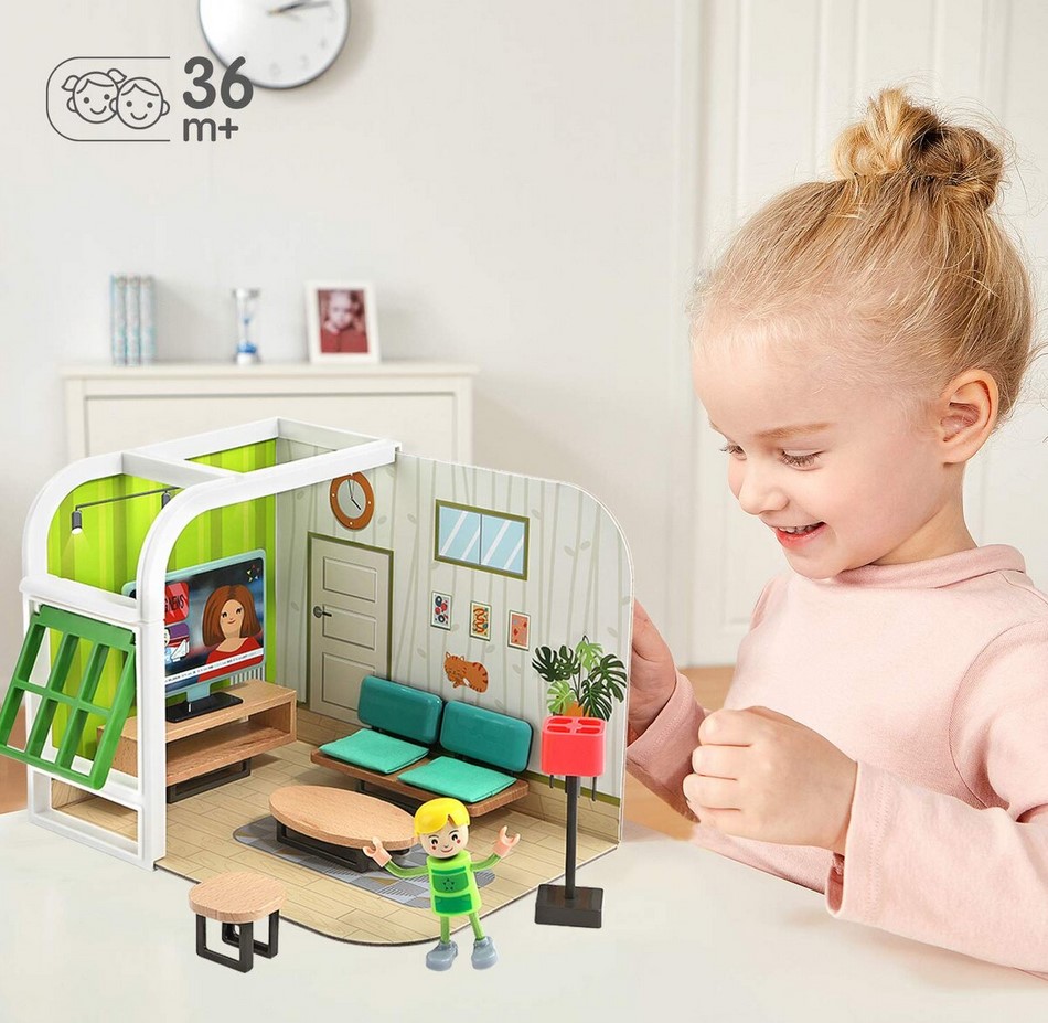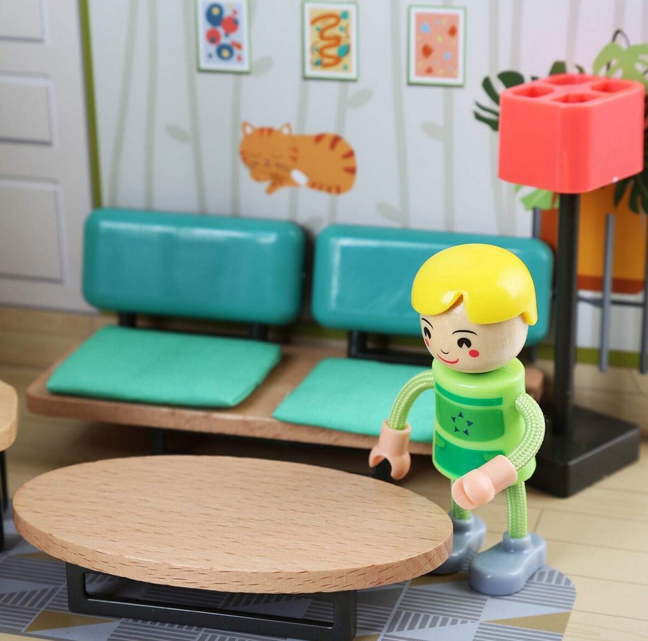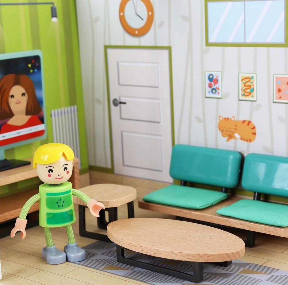• piesele de mobilier sunt realizate miniatural din lemn si plastic si sunt finisate in detaliu