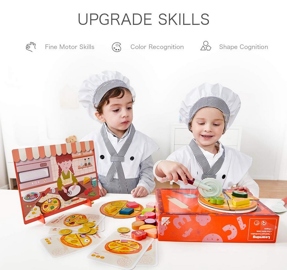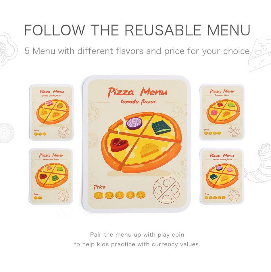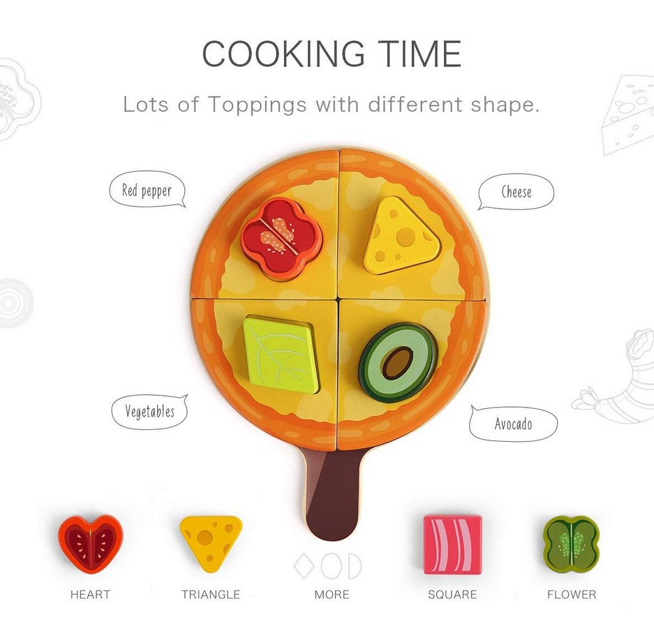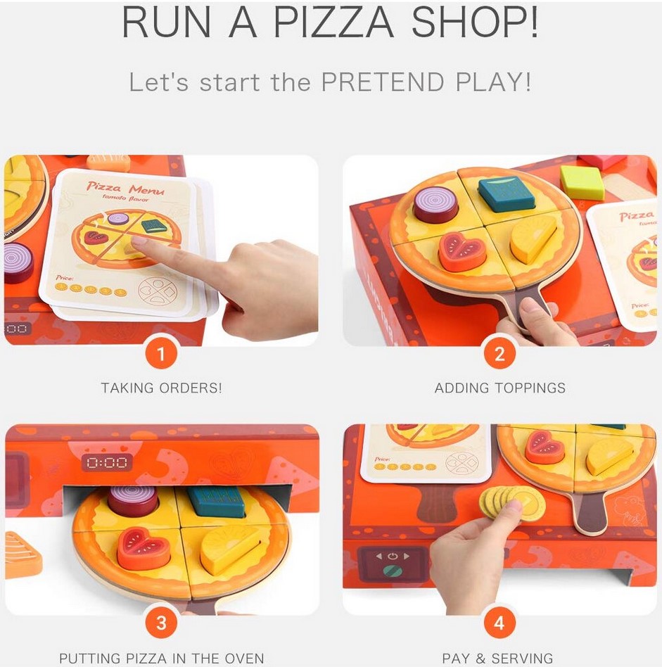 • piesele (topping-urile si  feliile de pizza) sunt realizate integral din lemn, cu finisaje deosebite