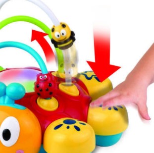 O jucarie amuzanta pentru micutii curiosi ce contribuie la dezvoltarea multisenzoriala. Pentru inceput apasa pe antenele gargaritei si aceasta va emite sunete vesele si lumini multicolore. Apoi, descopera cum poti face fluturasul, gargarita si albinuta sa topaie.