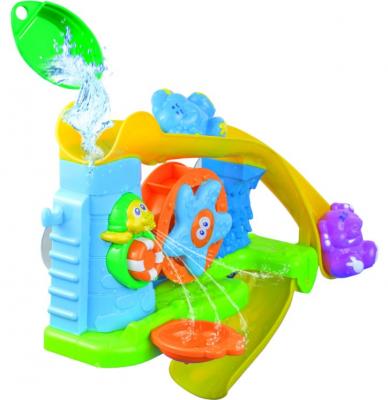 Ataseaza jucaria cu usurinta pe peretii din baie, multumita ventuzelor. Apoi, da nastere unei cascade in timp ce torni apa peste Aqua Park. Apasa testoasa si surpriza...aceasta te va stopi! Priveste ce rapid se invarte steluta de mare cand curge apa peste ea! Pentru distractie suplimentara lasa cele 2 animalute incluse in set sa alunece pe tobogan.