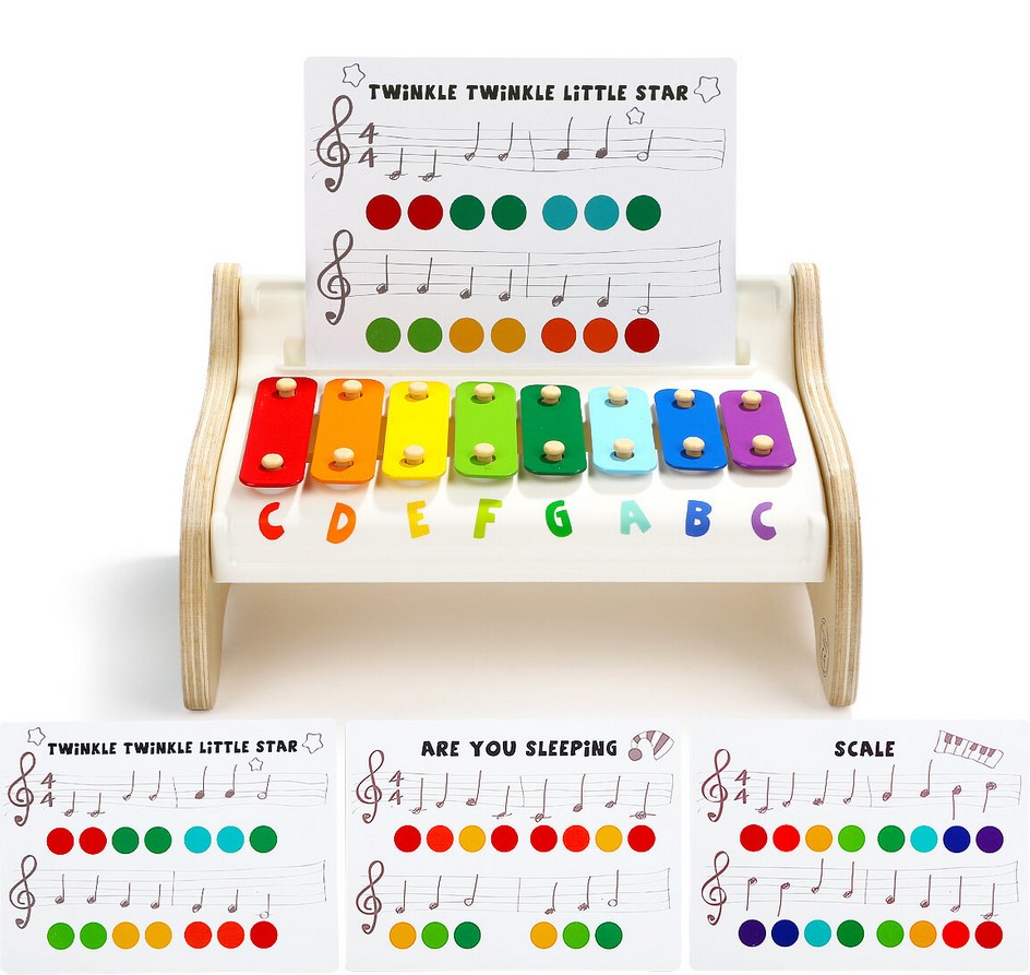 Descopera lumea magica a sunetelor si a culorilor cu simpaticul xilofon cu portativ.