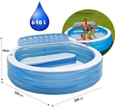- Conceputa pentru un grad de confort ridicat, piscina Swim Center are peretii fabricati din vinil si zona gonflabila de relaxare in interior cu sezut si spatar. Va veti putea destinde linistiti alaturi de oameni dragi si bautura racoritoare preferata pentru ca este prevazuta cu 2 suporturi pentru pahare;