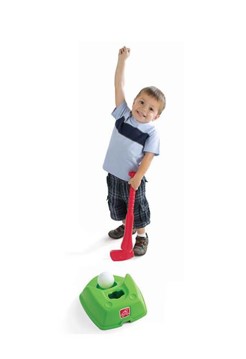 Score a hole-in-one or a home run with this Step2 T-ball & Golf Set. This sports toy helps toddlers and preschoolers to be active in their playroom or the backyard. It teaches cooperative play as kids take turns swinging the bat or putting the golf ball. Children’s coordination and motor skills will develop as they try to hit the ball off the tee or swing the golf club at the putting green. Made in USA.