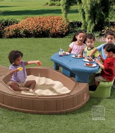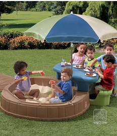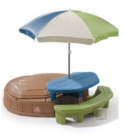 Locul de joaca Summertime Play Center este alegerea ideala pentru petrecerea timpului in curte sau gradina. Aceasta jucarie poate avea 2 tipuri de activitati: jocul copiilor cu nisip sau servirea mesei la masuta de picnic. Facut in USA, umbrela este fabricata in China.