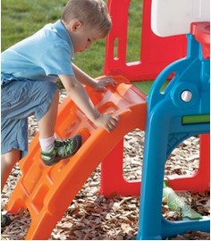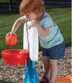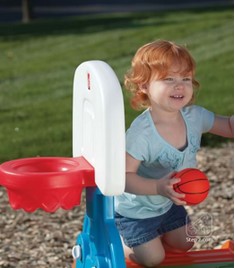 Micii atleti vor aprecia sa se urce, sa coboare, sa se catere pe Turnulet. Pot arunca la cosul de basket, pot inscrie goluri in poarta de fotbal si pot tine socoteala punctelor sau a golurilor inscrise pe tabela de marcaj. Copiii isi vor dezvolta capacitatile motrice catarandu-se, tarandu-se prin tunel sau alunecand pe tobogan. Facut in SUA, mingea fabricata in China.