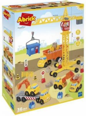 - Jocul de construit contine excavator, incarcator, camion cu platforma, camion, macara mare, o figurina a macaragiului si o cladire mica pentru lucratori.