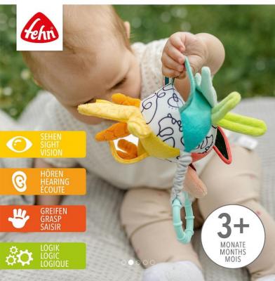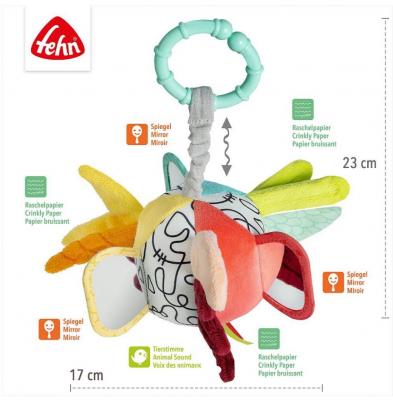• mingiuta senzoriala indeplineste multiple functii, fiind jucaria perfecta pentru carucior, patut sau scaun auto, inel pentru prindere, oglinda si emite sunete fosnitoare, aducand bucurie si distractie micutilor in timpul explorarii lor